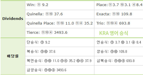 한국마사회 배당률(Dividends) 승식 영어 표기