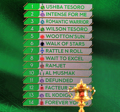 현지 22일 리야드(Riyadh) 킹 압둘아지즈(King Abdulaziz) 경마장에서 개최하는 1착 1천만 달러(약 140억원) 세계최고상금의 경마대회 사우디컵(Saudi Cup, G1, 더트 1800m) 출발번호 확정!