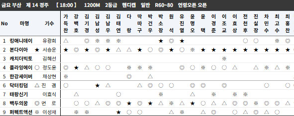 2025년 8월 1일 금요일 한국마사회 부산 경마장에서 14개 경주를 시행하며 1경주는 11시에 출발한다. 경마필승법 검빛, 경마왕, 명승부, 경마문화, 스피드 예상지, 코리아레이스 무료 종합지 전문가 추천 마번 모아보기