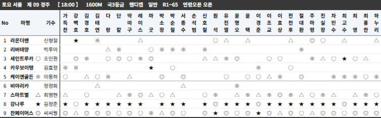 13개경주에서 강운수(1,2,5) 및 조합 패턴이 출현했다. 제주7R, 서울8R 2 조합에 강운마 3착, 한방 역전 서울 막경주 익일 강운수 9번 1착 타이밍 강공 마무리! 서울5R 광복 80주년 기념경주는 인3 익일 강운수 9번 남산미남 우승! 후착 강운마에 2조합인 인기 2,1위마(1,7번)순으로 입상했다. 남산에는 안중근 의사 기념관이 있다.
