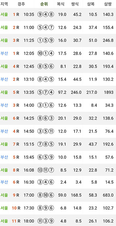 마사회 돈벼락 맞기! 경마의신 강운마권의 오행 패턴경마 일요경마 예상자료