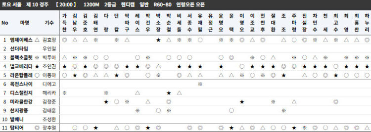 [야간경마] 2025년 9월 20일 토요일 한국마사회 서울경마장에서 10개, 제주경마장에서 8개 경주를 시행한다. 서울 1경주는 13시 15분, 제주 1경주는 12시 25분에 발주한다. 경마이기는법 검빛 경마왕, 명승부, 경마문화, 코리아레이스 전문가 종합지, 스피드 예상지 5두 마번, 마사회 출마 자료 모아보기