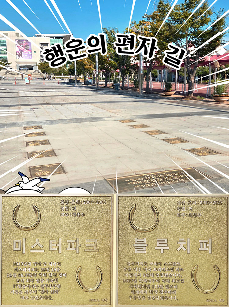 부산경남 경마공원의 개장 20주년을 맞아 부경을 대표하는 경주마들의 편자를 활용한 <행운의 편자 길>을 조성하였다.