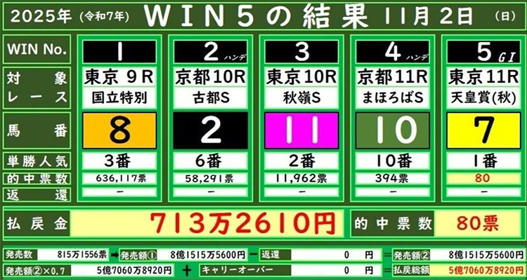 지난 10월 19일 윈파이브에서 역대 최고배당 5억6천만엔이 터졌다.