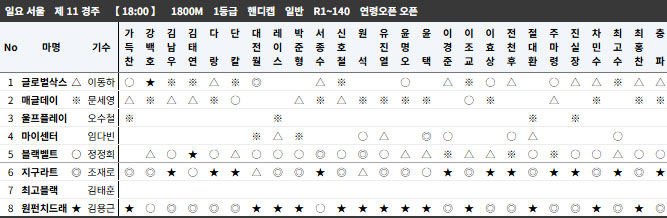 KRA 연금생활 서포트 경마의신 강운마권의 오행 패턴경마 일요경마 한구라 예상자료