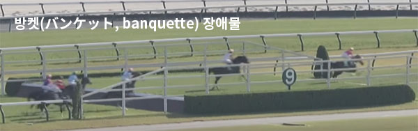 타 경마장 방켓은 오르락 내리락 경사로인데 교토는 고저차 0.8m, 길이 15.9m 다이(台) 형태의 구조물이다. 다이 위로 올라갔다가 내려오는데 3완보(完歩)이기 때문에 3단뛰기(3段跳び)라고 한다. 다이에서 뛰어 내리는 것은 보기보다 난이도가 높다. 속도를 유지한 채 클리어하기 위해서는 기수의 기승술이 중요하다.