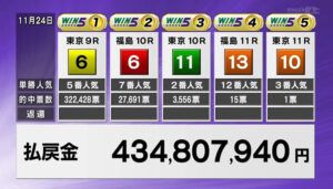 마사회 대회 매출은 약 21억9477만원, 강운마권이 삼쌍승식 861.3배 적중한 부경 5경주 브리더스컵 퀸(L) 매출은 34억원대였다.