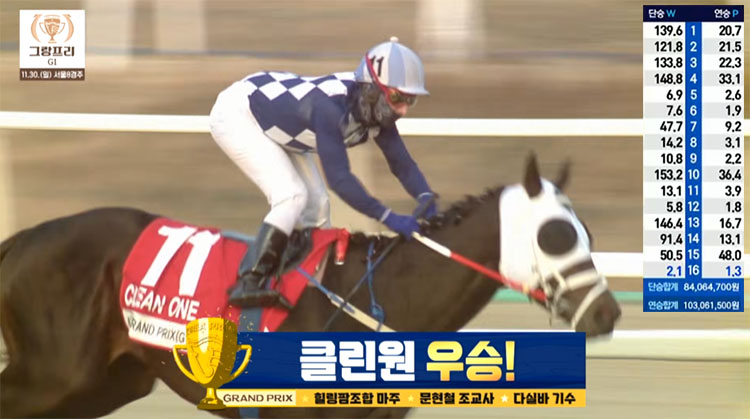 서울경마장 그랑프리(G1) 다실바 기수의 부산 클린원 우승