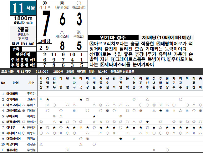 서울11R 예상자료