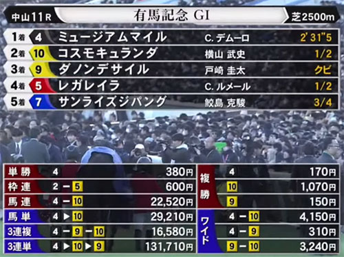 뮤지엄마일 우승 2025 아리마기념 매출 700억엔 돌파! 2165만엔 당첨 화제