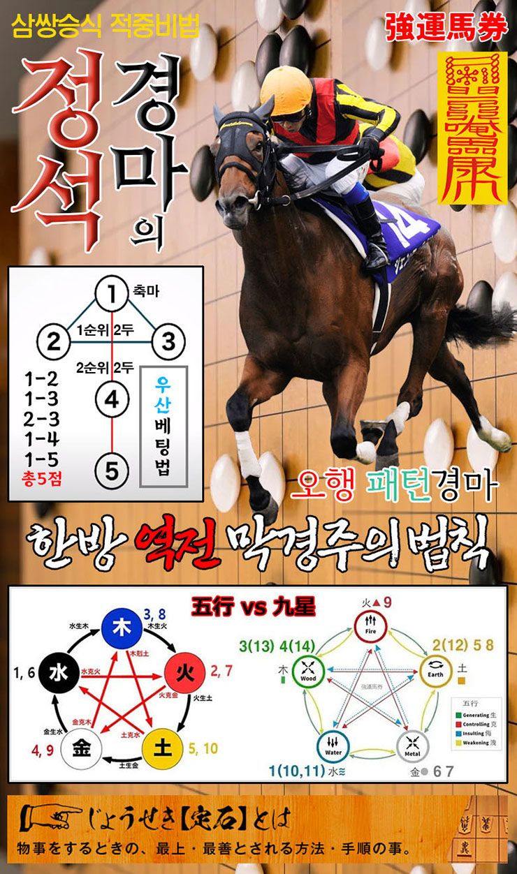 불의 기운이 강한 병오년(丙午年) 마판에 마권혁명(馬券革命)의 불바람이 분다! 마사회 연금생활 서포트 경마의신 강운마권의 오행 패턴경마 토요경마 돈벼락 예상자료