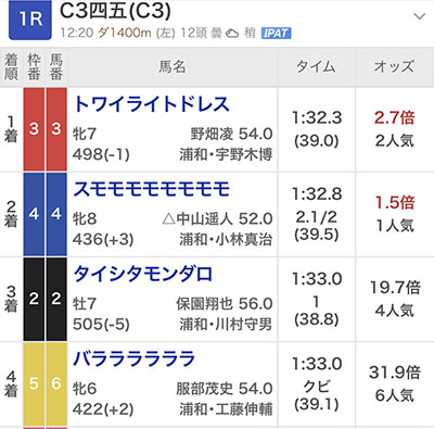 타이시타몬다로 大したものだろう 3착
