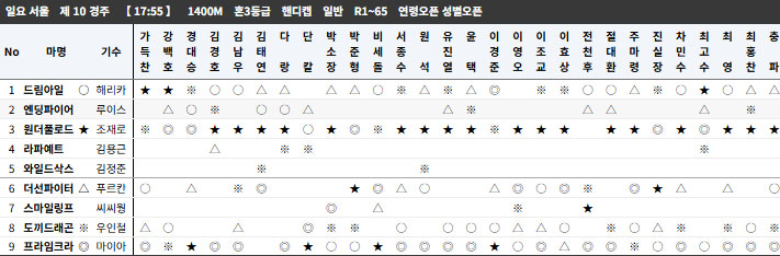 서울10R 예상자료