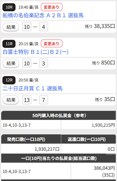 1/20 일본 후나바시경마 로또 결과 및 일본어 명백락