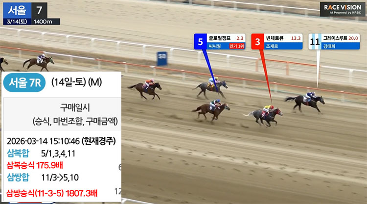 2026년 3월 14일 토요일 한국마사회 서울경마장에서 11개, 제주경마장에서 6개 경주를 시행한다. 서울 1경주는 10시 35분, 제주 1경주는 12시 5분에 출발한다. 경마이기는법 검빛 경마왕 경마문화 코리아레이스 전문가 종합지, 스피드 명승부 예상지, 마사회 출마 자료 모아보기