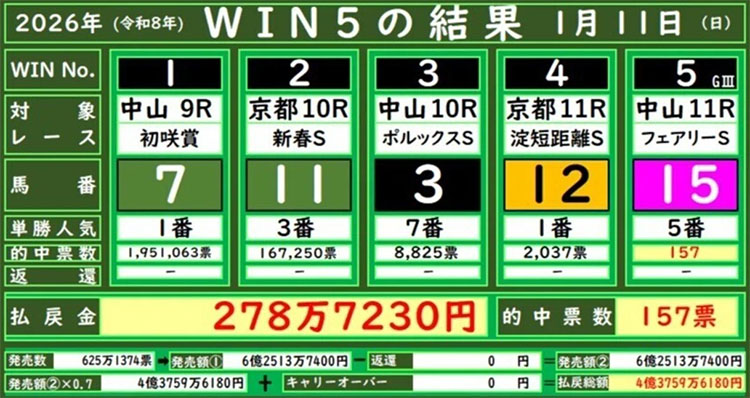 복승식 177.4배, 삼쌍승식(15-4-1) 8790.8배, 강운수 조합, 비인기 강운마 2두 후착 대박