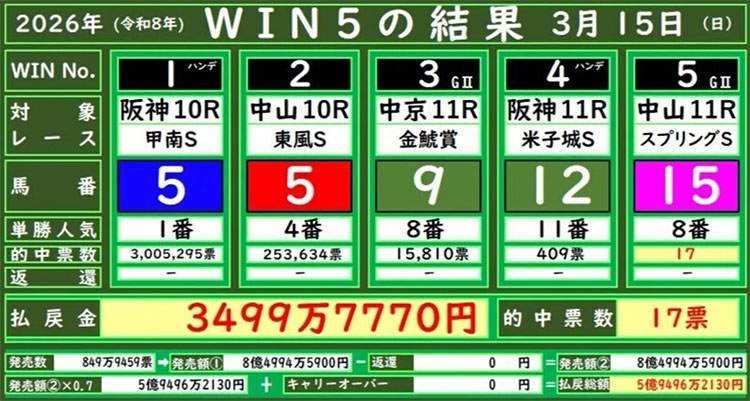복승식 48.7배, 삼쌍승식(9-3-12) 513.1배