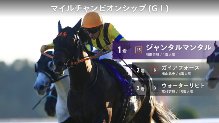 일본 교토경마장 마일 챔피언십(G1) 카와다 유가 기수의 인1 잔타르 만타르(Jantar Mantar) 우승! 일본어 중계 해설 pic.twitter.com/KFHTIcCtVn