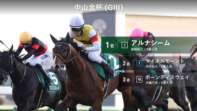 アルナシームが強さを見せつけて中山金杯で勝利!直線でグンッと抜け出す末脚が見事でしたね、アルナシームは普段よりも距離延長で走り切れるのかと言われてましたが、そんな不安を感じさせない勝ちっぷり#中山金杯 #アルナシーム pic.twitter.com/edTIiFiiuD