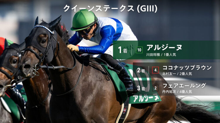 카와다 유가 기수의 인기 1위(2.9배) 아르진(Argine, アルジーヌ) 중상 2승째