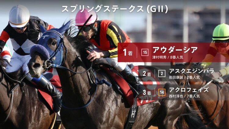 일본 나카야마경마장 스프링 스테익스(G2) 아우다시아(Audacia) 우승